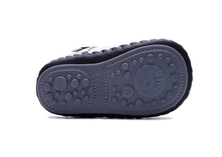 Diseñado para los pies de los más pequeños que recién comienzan sus grandes aventuras, cada par de Freycoo Baby está confeccionado a mano y probado con los estándares más altos. utilizamos siempre pieles suaves y flexibles de la más alta calidad para brindar comodidad y protección. Nuestra suela Baby de cuero lleva incorporada una fina almohadilla de goma que no evita que la suela se doble y permite la sensación "Descalzo".